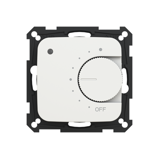 Bluetooth thermostat with floor sensor for room specific temperature adjustment. 230V / 50Hz / 16A / IP21 / Jussi. The thermostat can work in floor mode, room mode, combination mode or power controlling mode. Can be used together with ABBEcoHeat mobile app.