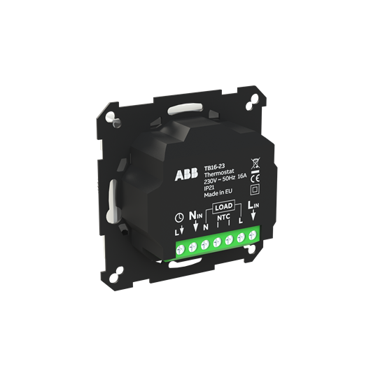 Bluetooth thermostat with floor sensor for room specific temperature adjustment. 230V / 50Hz / 16A / IP21 / Saga.The thermostat can work in floor mode, room mode, combination mode or power controlling mode. Can be used together with ABBEcoHeat mobile app.