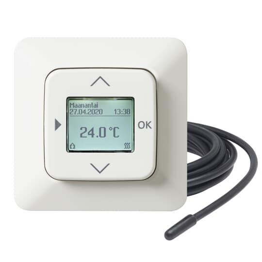 Thermostat with low insert (20 mm mounting depth) meeting the Ecodesign requirements. The thermostat is pre-programmed. Rated voltage 230 V AC ± 10% 50 Hz
