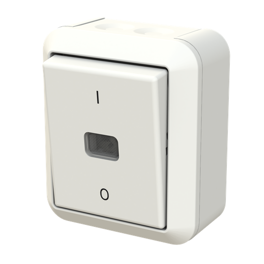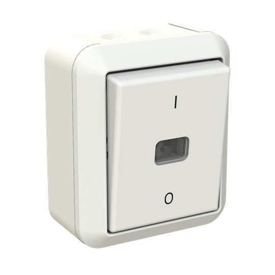 Surface mounting switch with screwless terminals. The terminals are for max 2 rigid wires. X-terminals are for extending the wires. Delivered without a lamp.