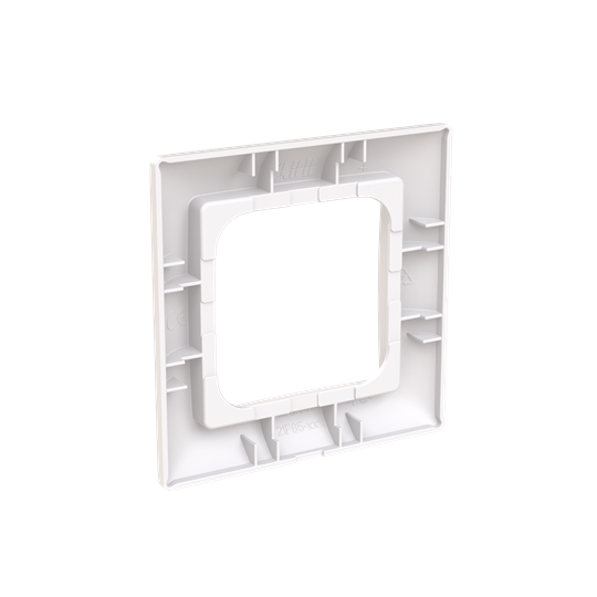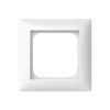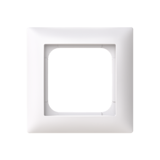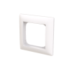 Flush mounting cover frame for 1-gang cover plated accessories, such as switches. Sustainable plastics used. The surface is glossy and easy to keep clean. Cleaning with a mild, standard household detergent.