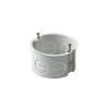 The AUS15.2 mounting box is used in buildings that have board walls. The holes are made with a hole saw (diameter 70mm). After the required conduit or cable inlets have been knocked out, the box is inserted in the hole. Turning the screws clockwise tightens the fastener against the board and secures the box in place. Conduits and cables are attached by using inlets that are pushed through from inside the box. Made of halogen free material (IEC/61249-2-21) and fulfills the requirements of the glow wire test according to the standard IEC/EN60670: 2005 (850 °C).
