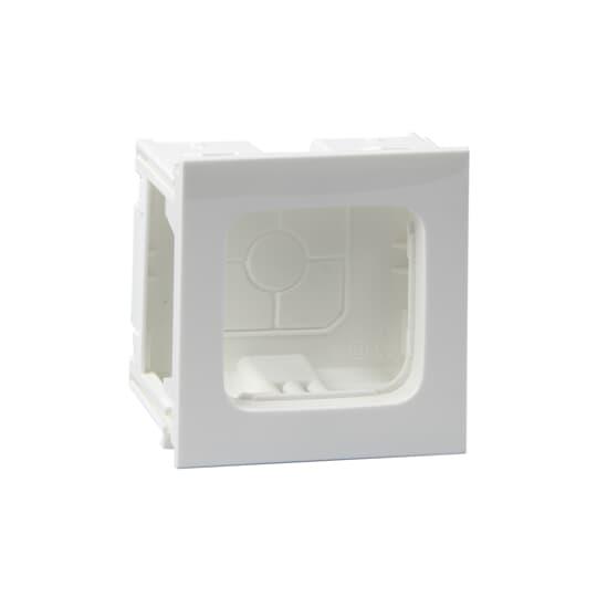 The general box contains an installation box and a cover plate. All 1-gang devices in the Jussi series (switches, dimmers, 1-gang sockets and telecommunication products) can be installed in the general box. An end package AUD30 or AUD31 is required for each group of general boxes. The depth of the box is 45 mm.