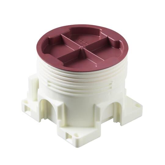 The device offers mounting box AU3.2 modified with a 12 mm deep extension ring. It has a total of five knock-out inlets, two of which are on the same side. The bottom of the box provides access for two rear inlets. The boxes can be connected to each other with the PMR474 interconnector. Manufactured from halogen-free material, the box complies with the IEC/EN60670:2005 standard filament test (850°C).