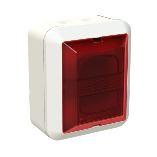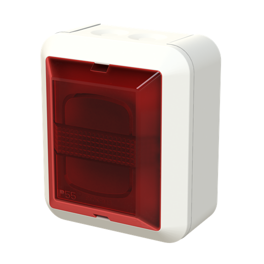 Surface mounting red signal light fitting with Led technology 230V/25mA, screw terminals.