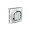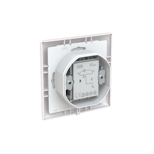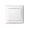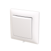 Switch with screwless terminals and rocker with screw fastening. The terminals are for max 2 rigid wires. Including switch insert, rocker, cover frame and the seals. The switch is IP44. Bio-circular plastics used in the frame and support.